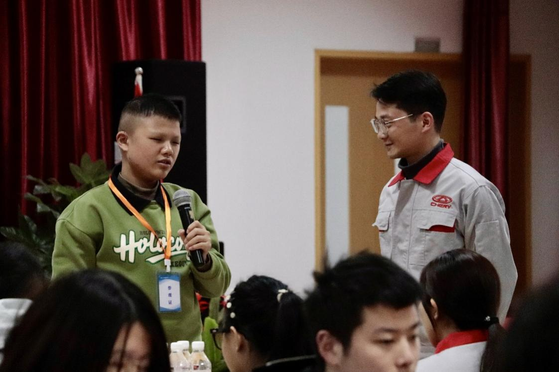 在“汽車知識小課堂”環(huán)節(jié)中,研發(fā)工程師為學(xué)生們講解了汽車的發(fā)展歷史,以通俗的語言介紹了NVH技術(shù)原理。學(xué)生們展示出極高的熱情,積極舉手回答問題獲得志愿者精心準(zhǔn)備的小禮物。一名身著綠色上衣的男生不僅準(zhǔn)確回答出“世界第一條汽車生產(chǎn)線誕生于1903年”,還提及中國新能源汽車發(fā)展規(guī)劃,展現(xiàn)出對知識的強烈渴望。